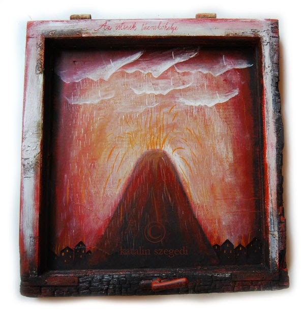 értelemszerűen adódott, hogy egy tűzben megpörkölődött ablakkeretbe fessem a képet. De